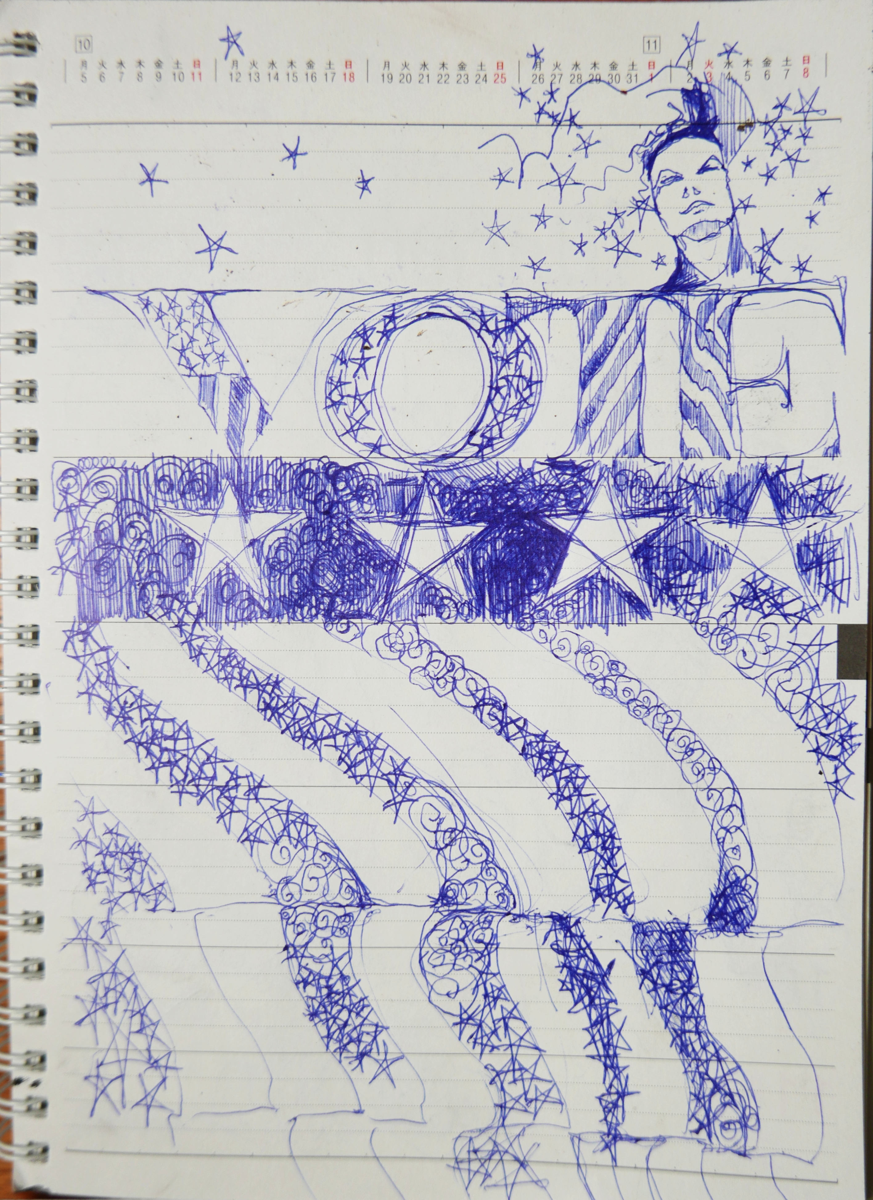 First up, the first in my vote series of october ink drawings. It's pretty rough, because I was listening to some political thing or other.