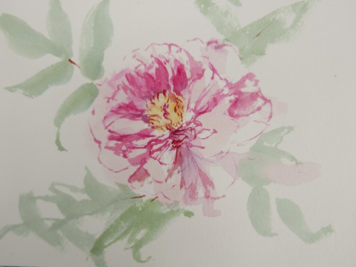 Here's another watercolour sketch of one of my Shima-nishik tree peony's blooms, this time on a 6x9 watercolour block. (These are travel books, glued around the edges so that the sheets of watercolour paper serve as both medium and the backing to keep it stretched and rigid.)