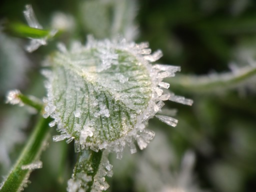 clover leaf with hoarfrost. Pictures/OnePlus/2020T/20200415T 1/120s, f1.7 probably with the clipon macro