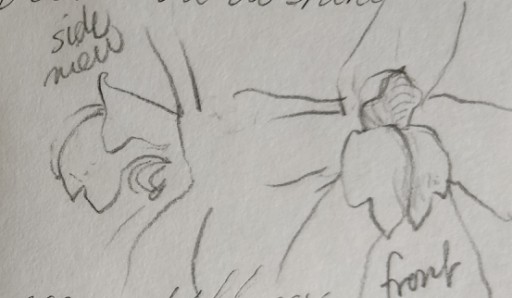 I find drawing flowers to be absolutely the best way to learn how they're put together, and made some interior[1] sketches that show the structures a little more clearly.