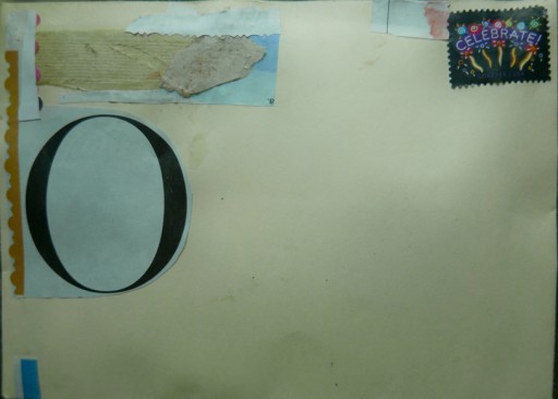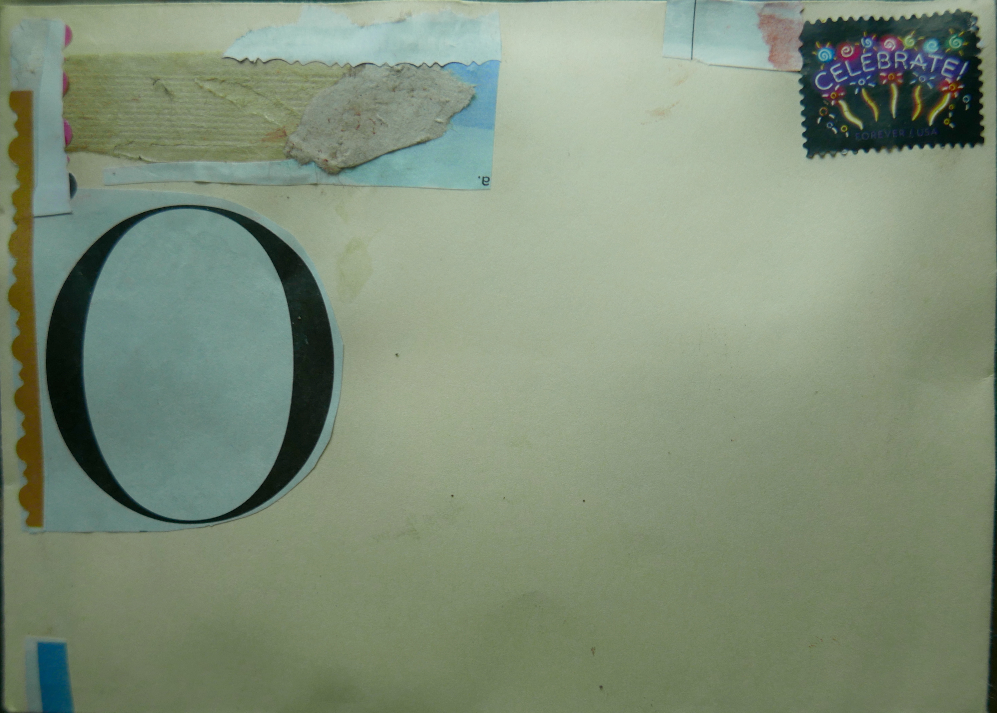 Since the chinese restaurant saying referenced cows, and I added a dog (the recipient has a small furry dog, if not this exact breed) I drew the kanji for these animals. And what could represent freedom for a retiree who loves to travel better than a stamp that features a Hawi'ian shirt? Because the stamp on the front of the envelope, while appropriate to the ‘celebration’ iconography, also is cancelled, I put a uncancelled one on the back of a Black novelist, Nella Larsen. As a Harlem Renaissance writer, her stamp not only goes thematically with one of the holidays, but also visually ties to, and diagonally links, the similarly blue-purple ‘on’ text.