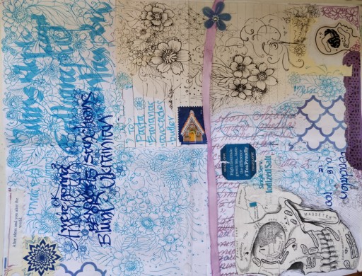 10apr22 13:10, oneplusT, some cloning (mostly to clean up the curled edges, transform tool ditto...paper, stamps, ephemera; the medical illo is courtesy of Fran:)