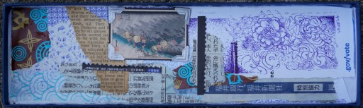 The box was decently made, and very much in the proportions ideal for necklaces, but the liner paper in bottom half of the box was damaged when I ripped out a cardboard insert designed to hold the nibholder in place, so I decided to collage it.