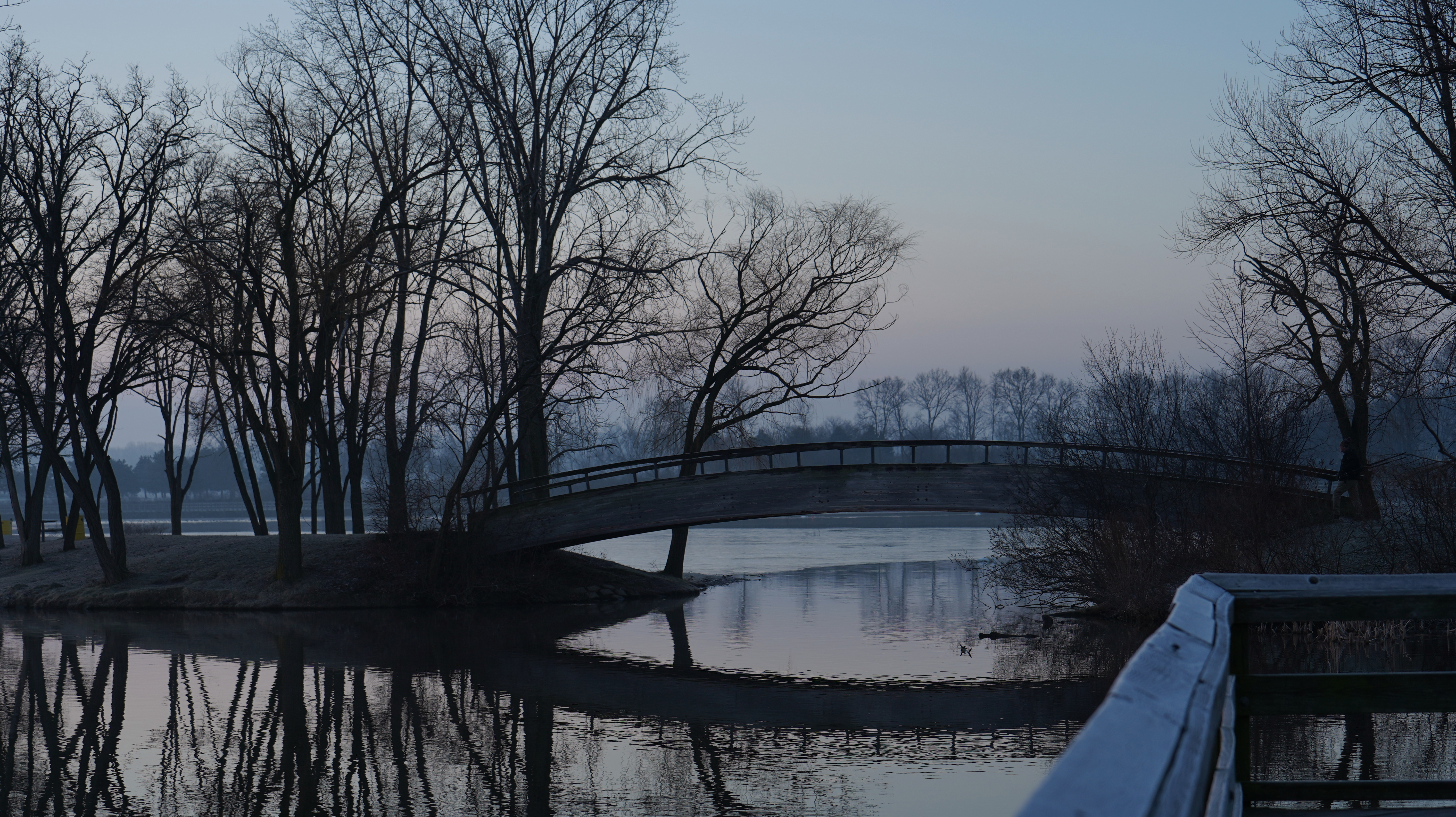 So the sun actually shone during the winter solstice last year, something it doesn't ordinarily. I'm too lazy to get in the car & go far enough to actually be able to see it rise—I love our trees, but they do make seeing true sunrises and sets impossible—but did manage this early morning shot of a bridge I rather liked.
