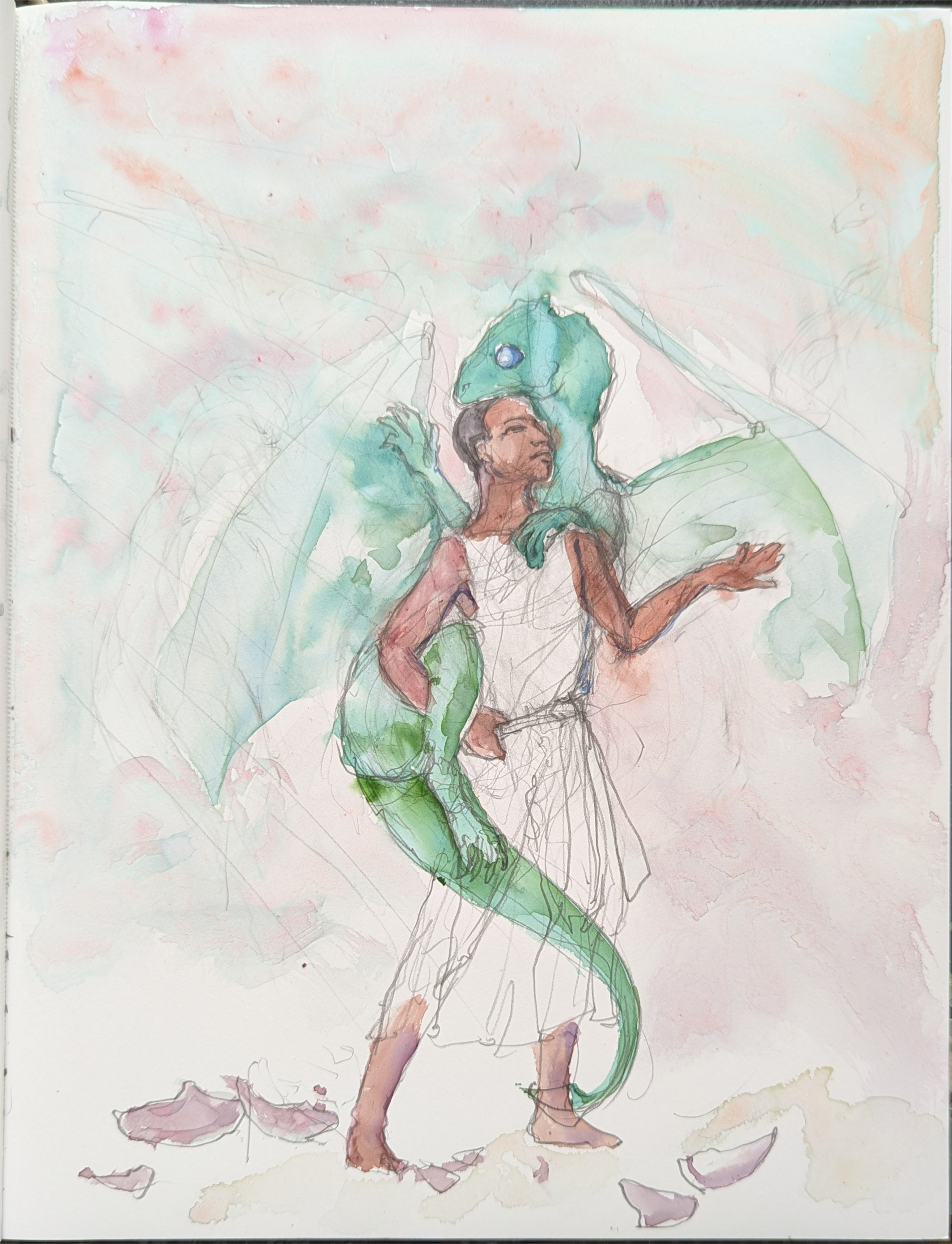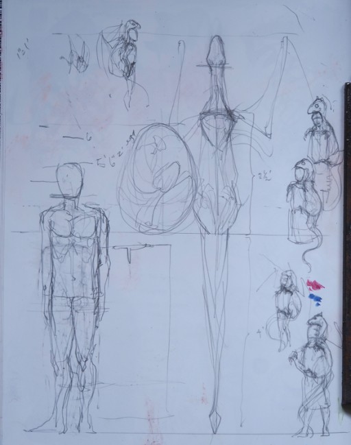 working out the relative sizes of dragonet and candidate: I would've almost certainly made the dragonet too small without creating this 1" to 1’ sketch, which is on the facing page to the other.