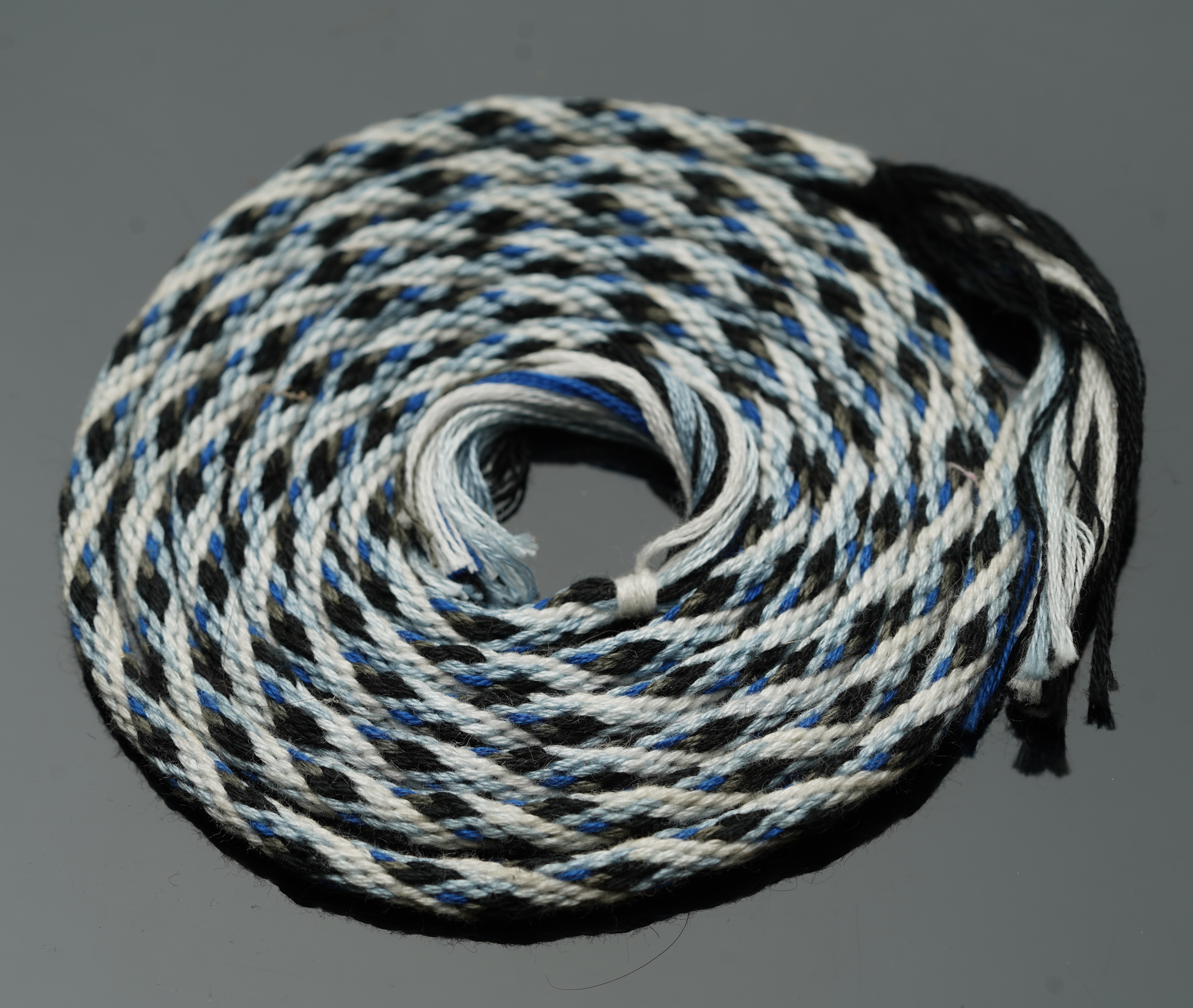 16 strand kongoh disk braid. Length (not including tassels) 38", or just under 1m. Photographed 12mar23, sony ILCE-7C, 90MM sony macro, f/7.1, EV 0, 1/160s, ISO 50, godox flash. Cropped and scaled, otherwise unaltered.
