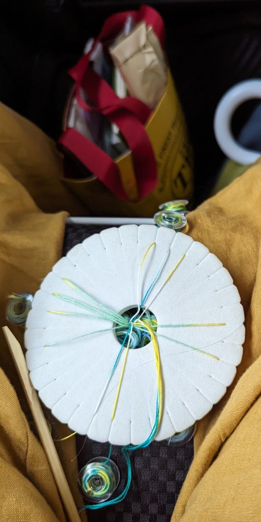 new braid, 2 varieties of variegated cotton yarn for sashiko style embroidery; shot on pixel pro 6 10:27 28apr24; cropped and scaled in gimp