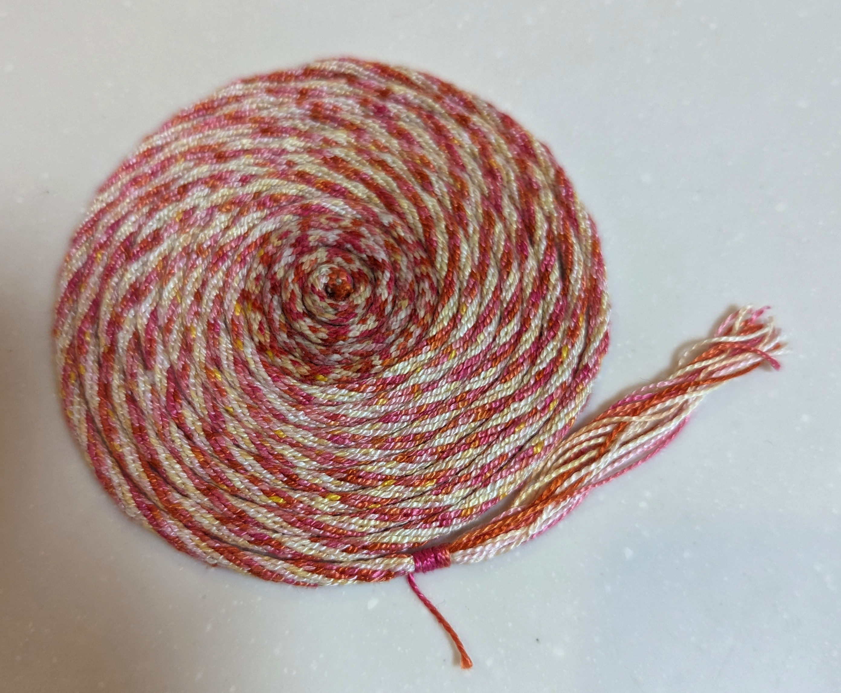 Then it took me another six months, very nearly to the day, to sight the braid hanging up (i.e. find it) & measure the length. Whew! What fuss for something so ugly: yeah, this was one of those that looked good as individual hanks, but just wasn't when braided. C'est la vie.