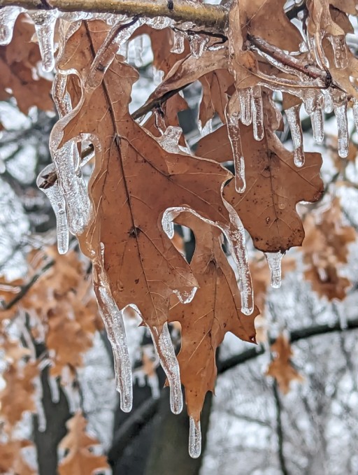 Continuing on with the winter weather theme, since we're supposed to get 4–8" snow tomorrow evening, here's a picture I took in my front yard after the last big weather event, the ice storm that took out our electricity for over 4 days: