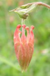 This is the species coloration, at any rate—well, according to an excellent site about Connecticut wildflowers, Wild Red Columbine, Aquilegia canadensis, is a native member of the buttercup family and prefers rocky woods and slopes, which was certainly the case here, as the railroad tracks were anywhere from 3 to 10 feet above the road.