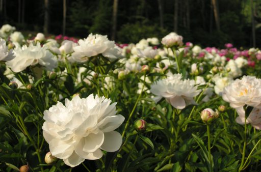 I've heard modern peonies come in all sorts of weird colors, but I'm perfectly satisfied with the oldfashioned magenta, pink and white kinds.