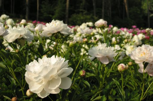 But I lucked out; maybe because these are old-fashioned varieties (or so my friend told me.) The peony garden is at the top of the hill, and I mistakenly went downhill the easy way, missing the close entry to the garden—so I only had a few precious minutes to photograph the flowers before a) I went off to a self-imposed appointment and b) the light got too harsh.