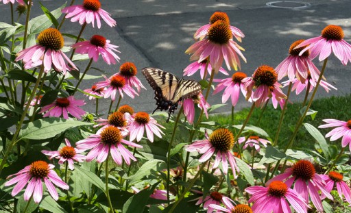 Swallowtail on Echinacea. No, not my echinacea, some neighborhood echinacea. But I swear, mine looks similar, and there have been butterflies on it! galaxy s4, 31jul14.