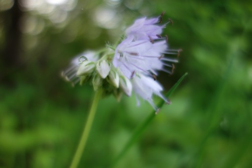 This proved actually to be ridiculously easy to ID, as I had both purple and white samples, and the leaves (in shots not shown) were deeply divided. Another distinctive feature are the long stamens, that protrude significantly past petals.