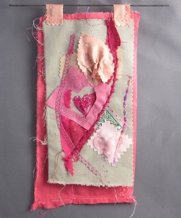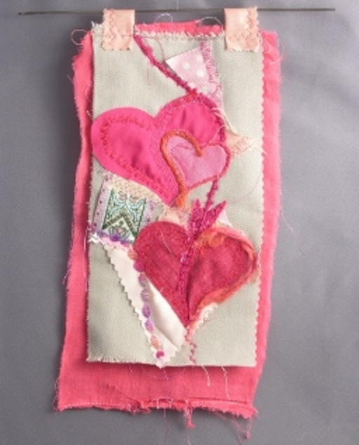 The introduction for this post ended with an impassioned plea to count my media as vital, as beautiful, as ultimately relevant as those others. These little hangings are a synthesis—unabashedly made for the valentine's day etsy market, using machine embroidery (well, at least it's freestyle machine embroidery, though that's ony because a) they haven't open-sourced the software to program embroidery machines and b) at this point, even if they did, I couldn't afford one)—yet incorporating one of longest loves, fabric, thread and yarn, assembled in bits and pieces I've scavenged and collected and begged, that somehow sing to me in a way that perfectly shaped even fat quarters from the store never could.