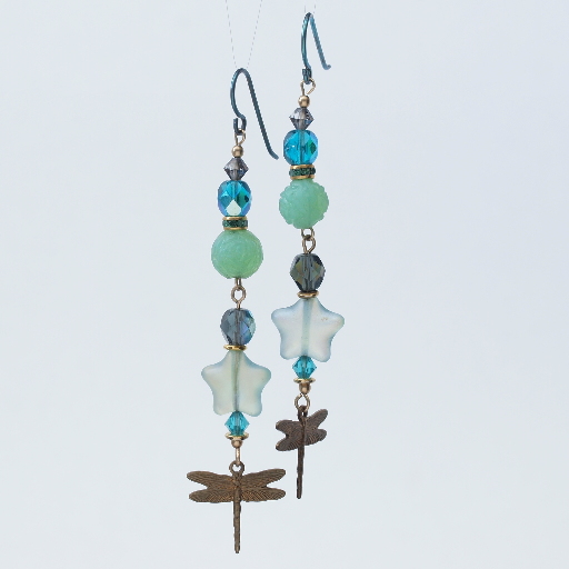 My dear friend Page loves dragonflies, Art Noveau and seafoam green, so it's hardly surprising that she could, in beads, capture the essence of all three, as she does in these stunning earrings: