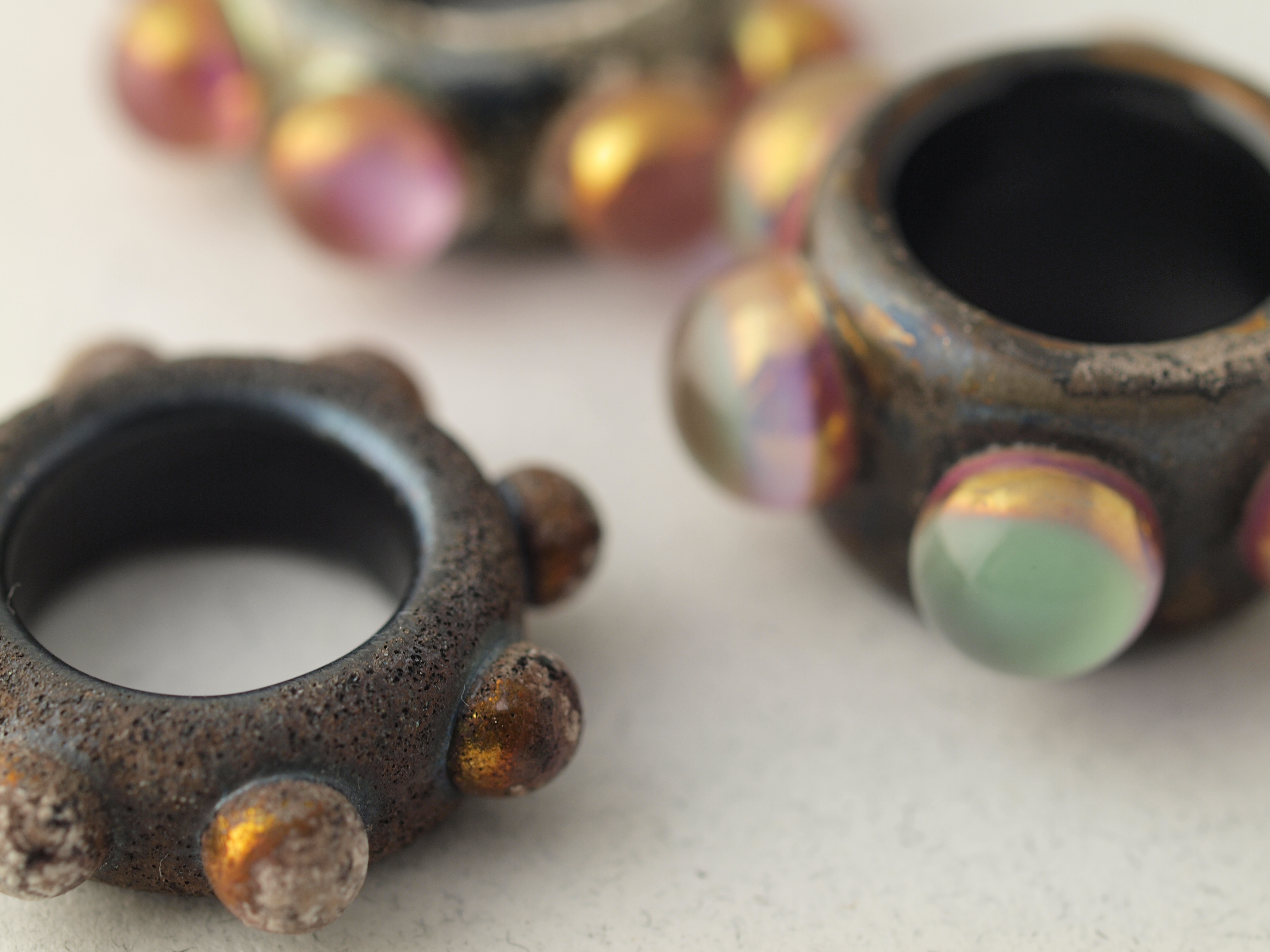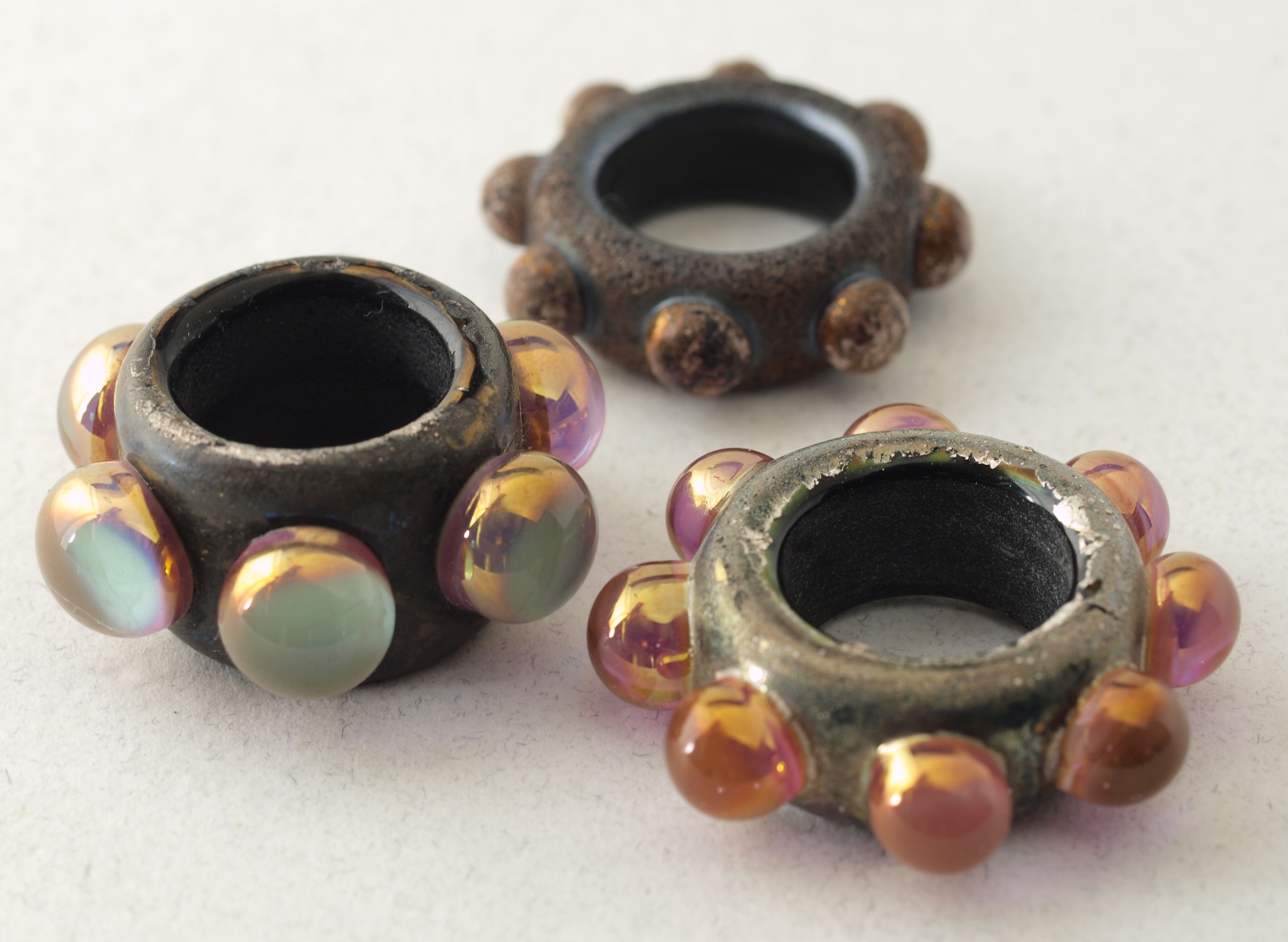 I myself particularly liked the antique feel of these beads, having done something similar with my ‘roman glass’ series of antique curliQs. Hers, however, have the lovely contrast between the shiny golden glassy dots and rough base, which I think takes the concept to another whole level.