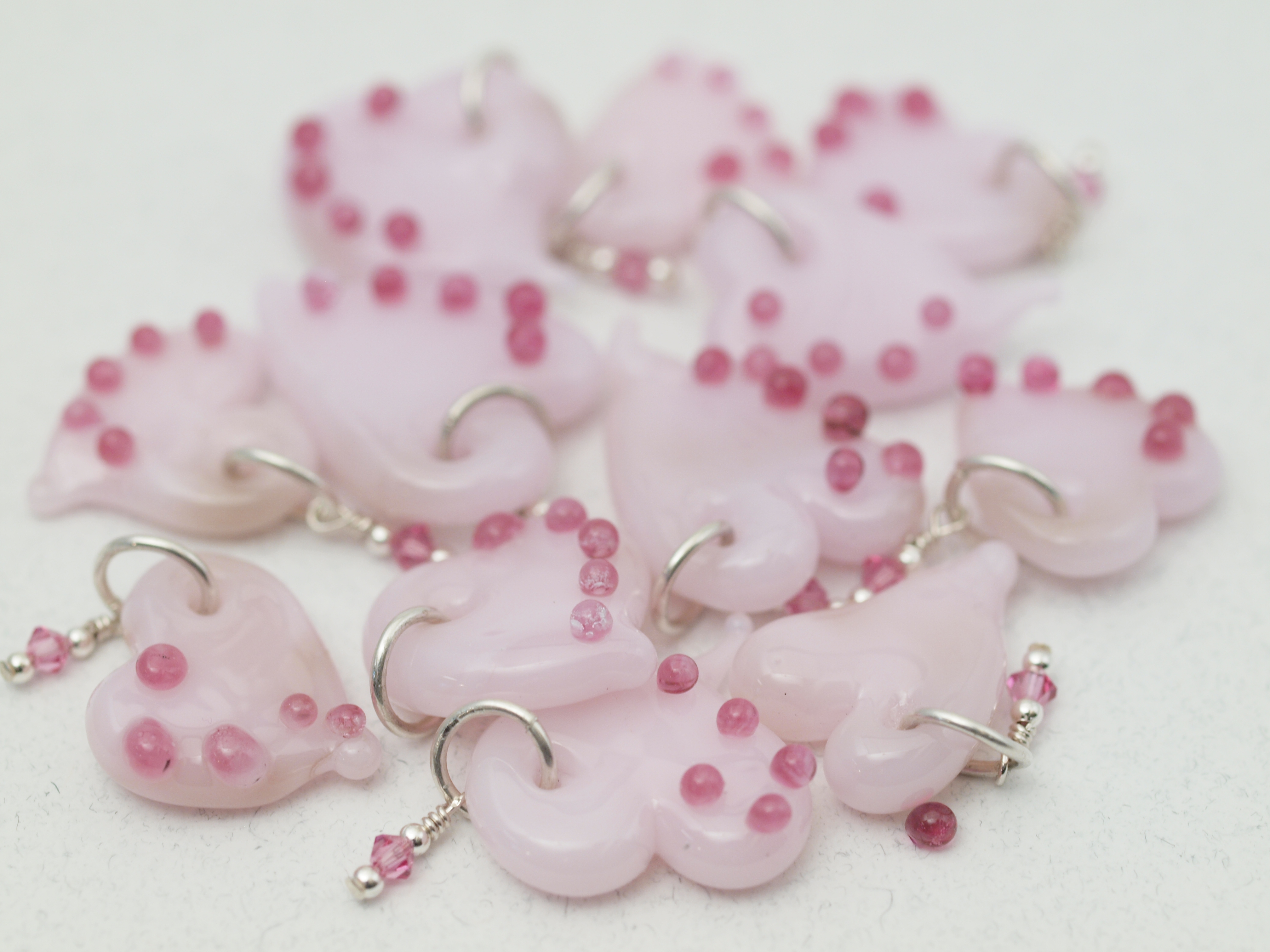There was some argument about the black iirc, but some people simply couldn't face the saccharine combo of pink/white/red, so we added black & told people they could use any or all of the colors. I did insist the beads be designer sized, so they could potentially be made into a bracelet; also to encourage folks to make smaller, simpler ‘designer’ beads.