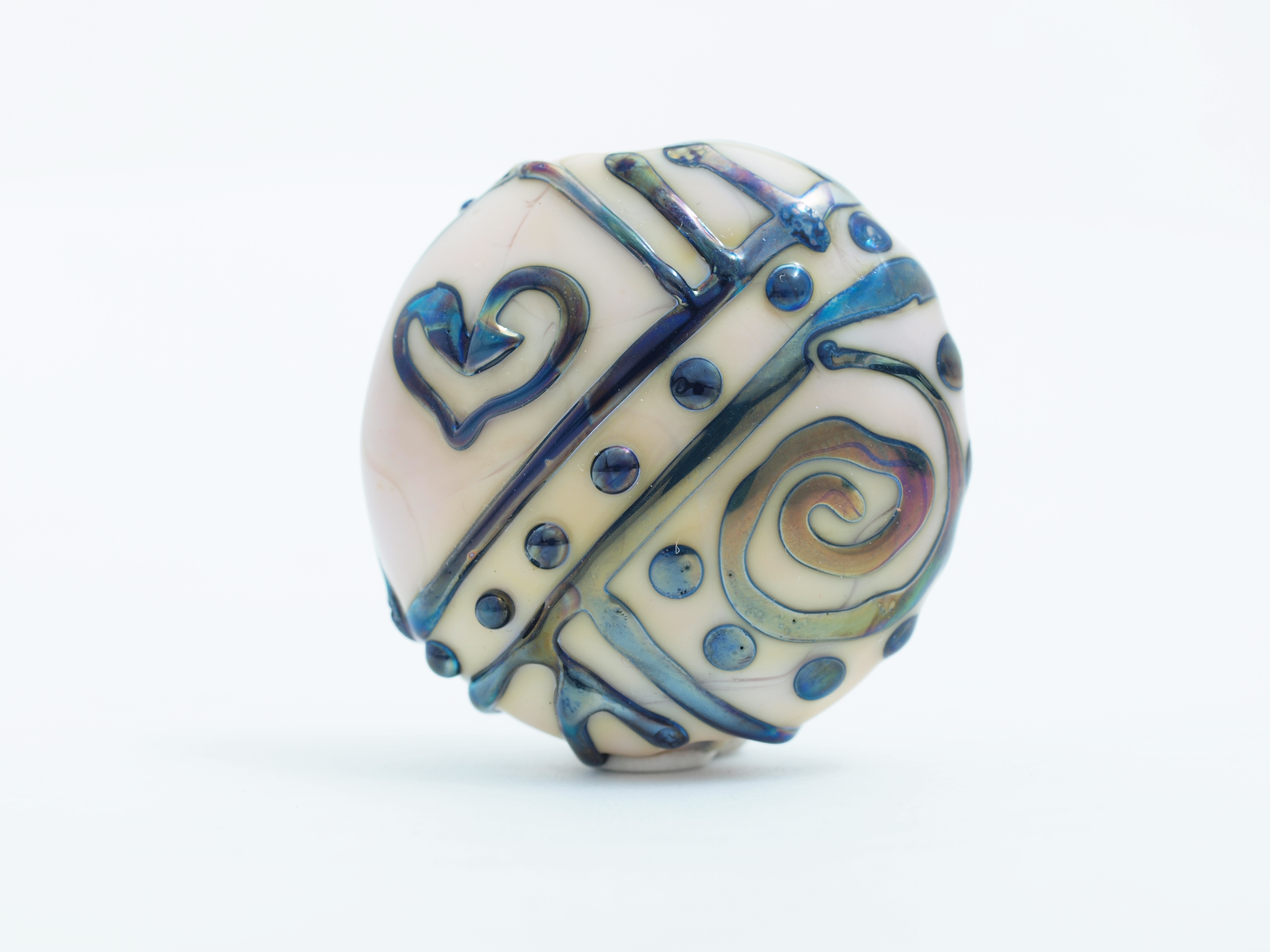 These delightful objects were made not by me but my friend Cindi Brunell, and are, um, silver pink or opal yellow with one of those very expensive silver bearing artisanal glasses for the scrolling.