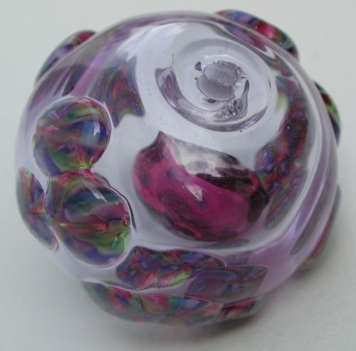 I can't say the murrini look exactly like the patterns my marble kaleidoscope makes. But at least the three canes do give three axes of symmetry. After seeing other intepretations and getting comments, I should have a better sense of where I want to take this. I hope who ever receives it enjoys it. Though not anything like Ms. Dove's intepretation, it does at least have a lot of colors.