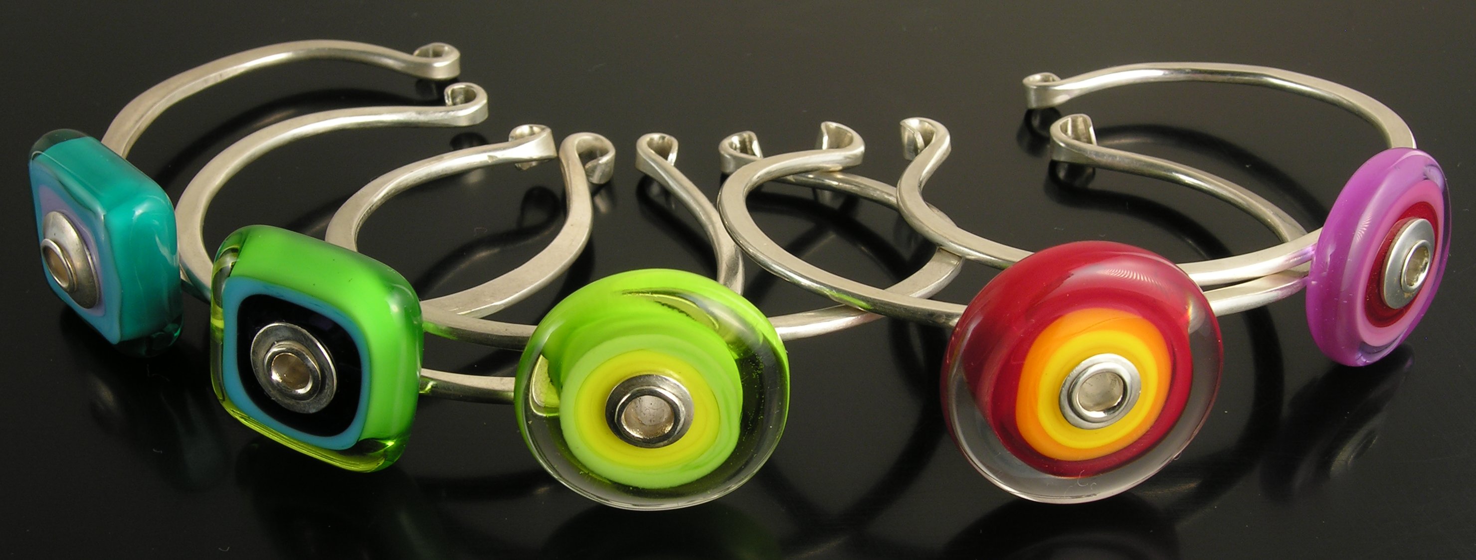 I love the bright, primary colors in Kristin Perkins’ bangles. (And of course, I put them in chromatic sequence:)