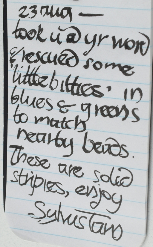 took u @ yr word & rescued some ‘little bitties’ in blues & greens to match nearby beads. These are solid stripes, enjoy