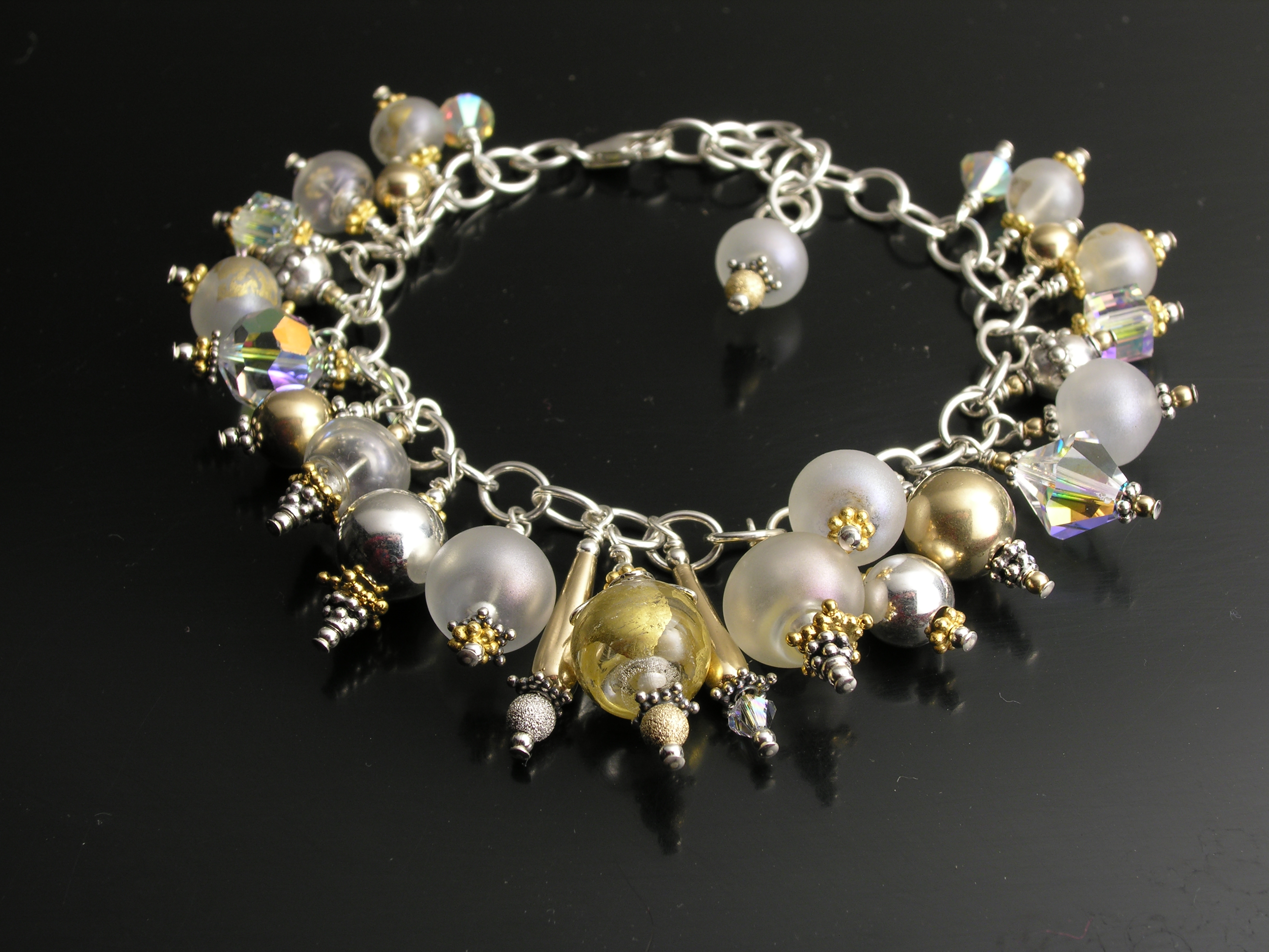 crystal, gold & silver charm bracelet