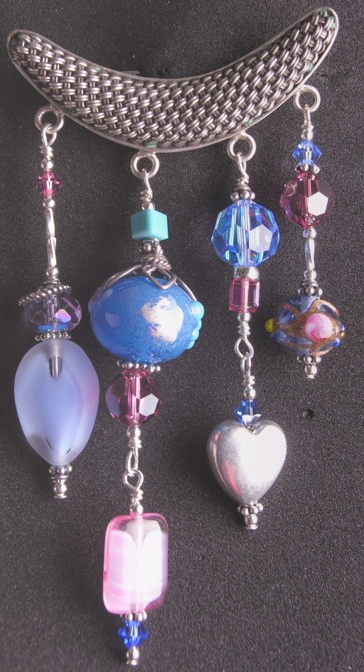 I've always really enjoyed the rather free-form—what I call organic—texture and color of abstract frit and powder beads. But this pin also has a traditionally styled floral lampwork bead (not made by either of us) and of course, flowers are definitely organic.