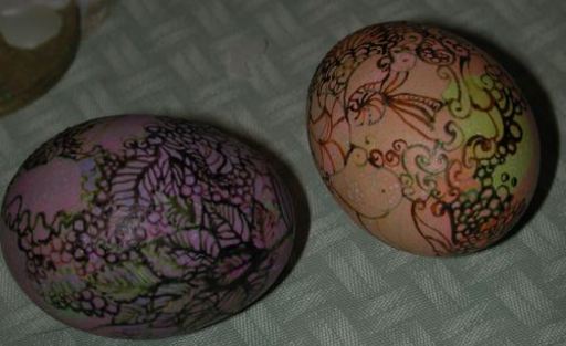 I tried wiping eggs with vinegar to clean any oils from them and to etch them. I don't think it etched ’em nearly enough. Next year I plan to submerge them in vinegar.
