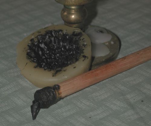 stylus consists of a bent cone attached to handle via a tang wrapped with something—metal wire is ideal, as it doesn't burn.
