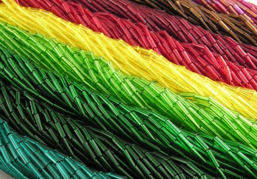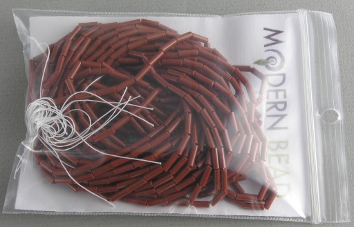 Well, naturally, I had to check it out. It was a relatively new shop that had just opened. I'm pretty sure I spoke to one of the owners—in any event, the gentleman was most helpful. I had to make a lot of stockings and so was getting interested bugle beads again, particularly ones with rounded ends. Well, these weren't quite as smooth as some I managed to acquire somewhere-or-other, but they'd definitely been rounded off from the razor sharpness that characterized this sort of bead in my childhood. And, they were plain, not silver lined (and thus couldn't tarnish). Plus of course being of even size, with straight ends, that laid well on the string—good quality.