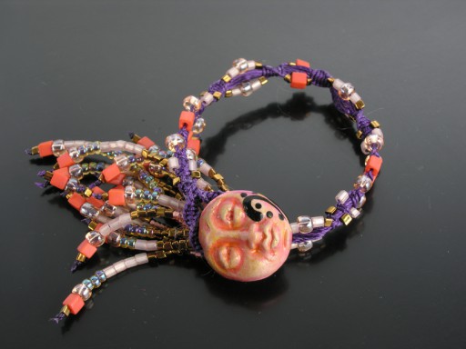 Beaded crochet bracelet featuring lampwork. Originally created & posted 11jan07. Private collection. 11jan2007