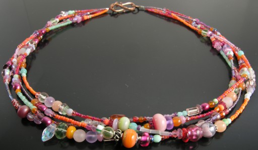 So there you have it—these multi-strand necklaces may look like a jumble of beads, but they actually incorporate (pretty much as a minimum) something in the neighborhood of four hours of work.