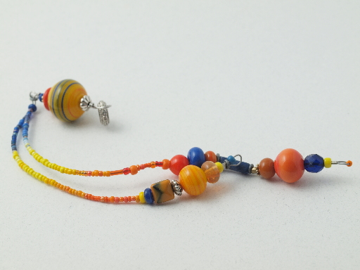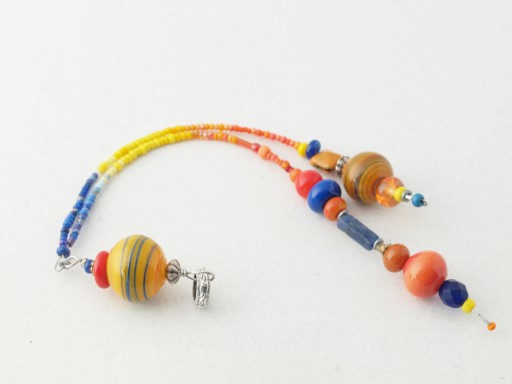 dead mouse, strung & photographed 18nov12. Lampwork, vintage, czech pressed and glass seed beads; lapis lazuli, base metal. Approx 9 inches long