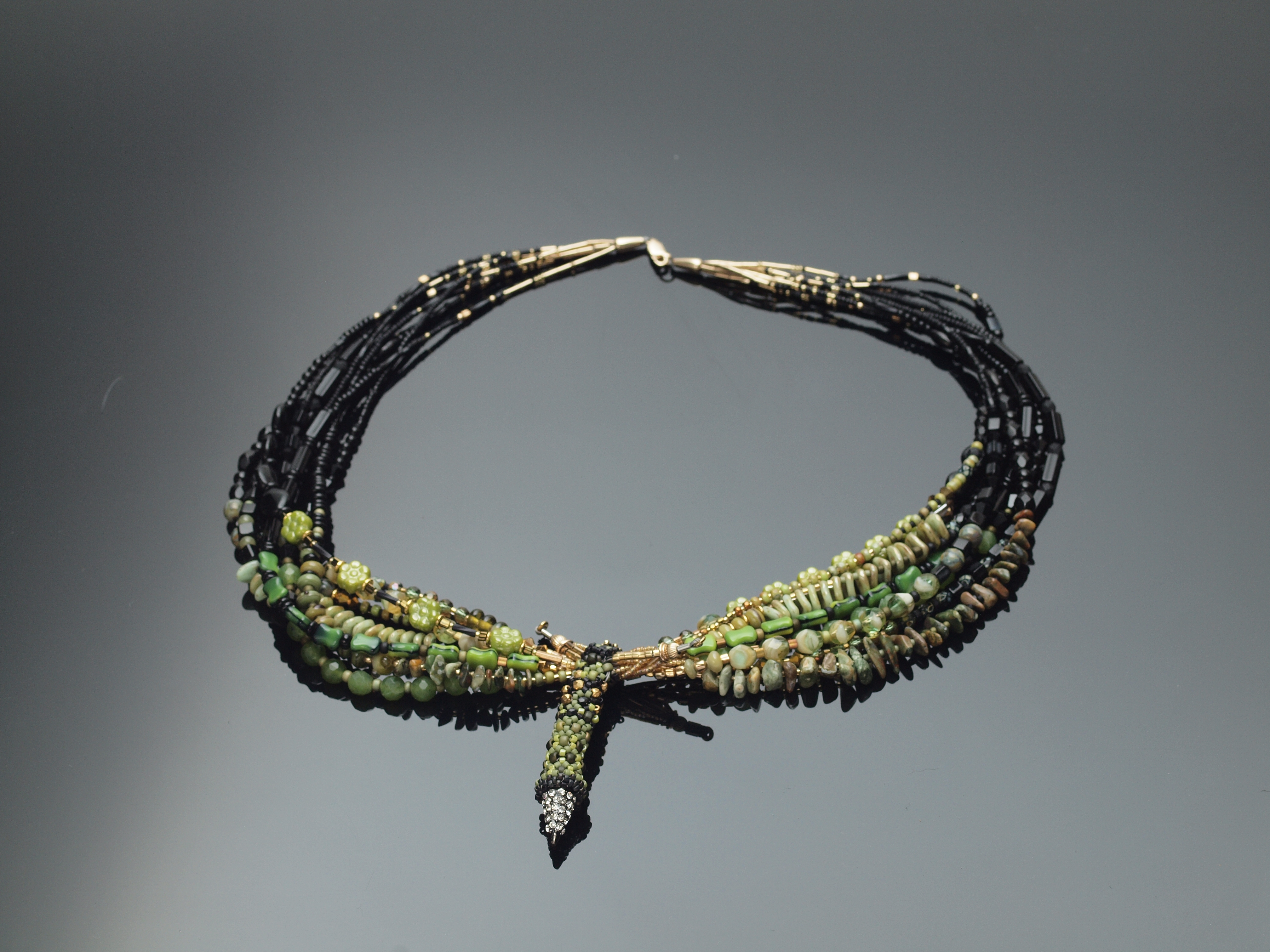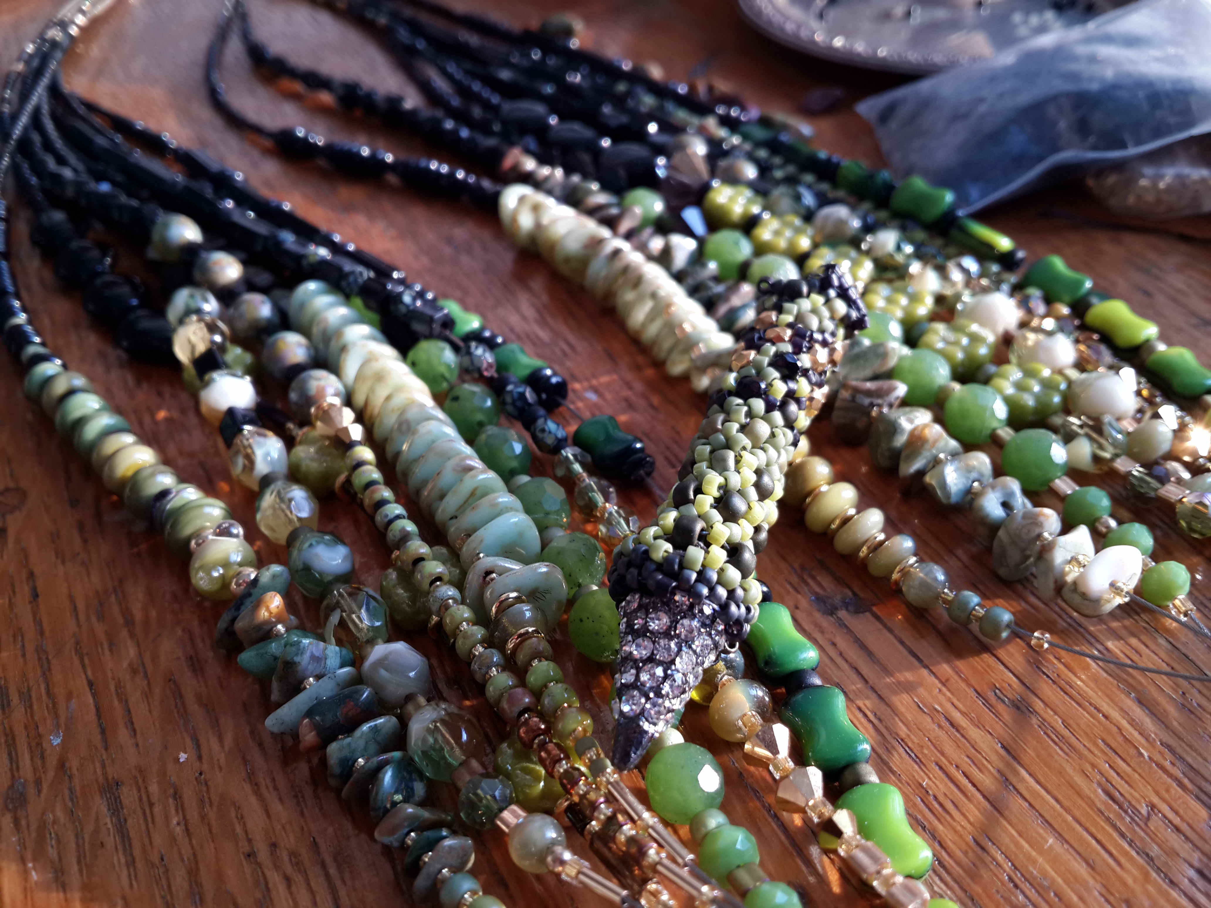 [3]It now being April of 2018 this means the tray of black and olive beads I have been saving to make that next necklace in the series with the pressed lentil has been sitting a year. No wonder I'm tired of looking at that tray—it also means I've been wanting to get back to some bead embroidery for roughly that long. Eek, but time flies...