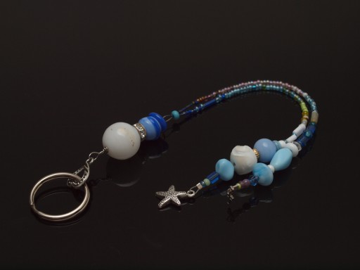 [1]The irregularly sized lustre aqua transparents and iridescent lime green opaques, not to mention the date, are the giveaways, here.