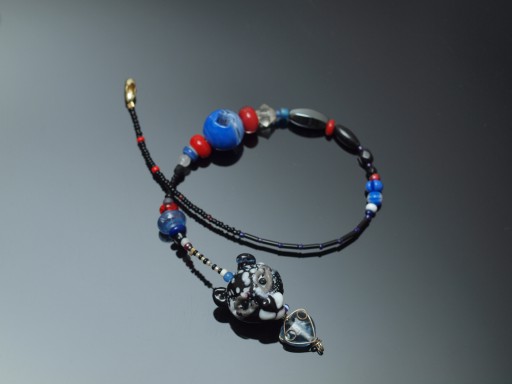 I put the little blue bead with the wire-wrap on the bottom because when I used a similar wire-wrapped bead as a mouse joint, it pulled apart; I therefore felt this component was suitable only for low-use, low-stress applications that personally belong to me (so I can fix any failures.)