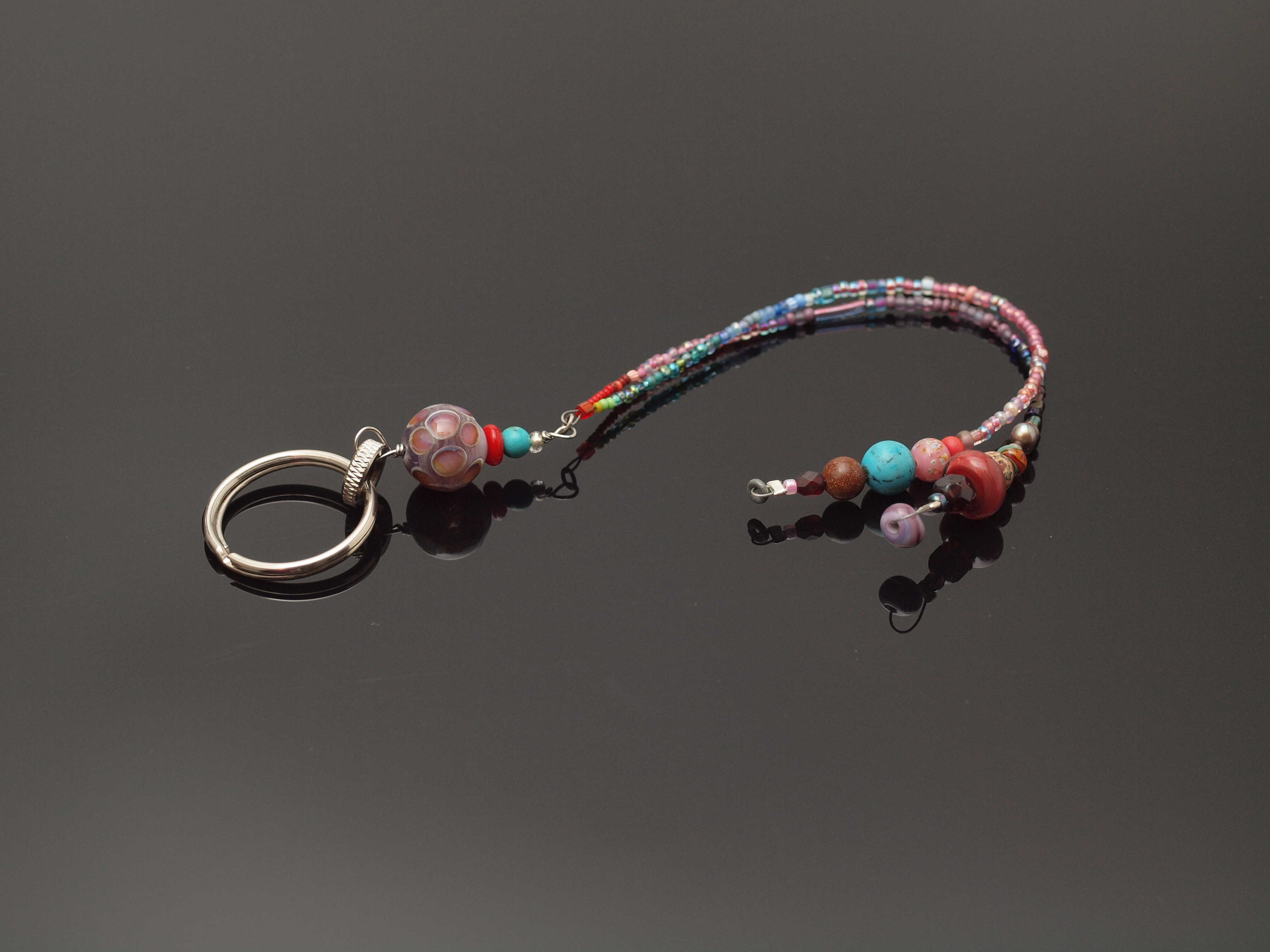The layered-dot focal is, iirc, assorted expensive silver bearing glasses I put together hoping they'd do something totally awesome, but the reality is that multiple layers of expensive glass usually is...kinda boring: you have to combine unexpected stuff to get the cool effects, which means lots and lots of experimentation, instead of trying to take shortcuts/throwing money at the problem.