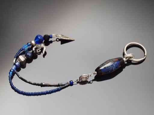 I photographed this mouse awhile back (in late 2019), and it was probably made the same year. The focal, which is a barrel bead rolled with frit, was deemed to be a failure by its creator (a member of my guild whose name name I failed to write down, and may not actually know, since despite being a member of this guild for, um, 15 or 20 years I'm terrible with my fellow members’ names. I appreciate them all the same, and thought the bead shouldn't be thrown away, so she kindly gave it to me.