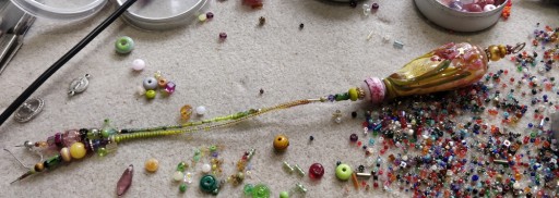 The repair took about an hour to do, and that with sorting out some of the beads ahead of time. Well, stringing is supposed to be a meditative practise, after all.