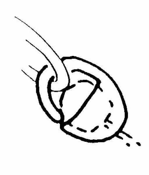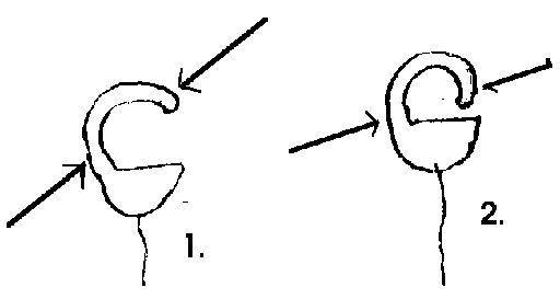 Arrows show how jaws of pliers should be positioned. Note changing angle. Rings of clasp omitted for clarity!