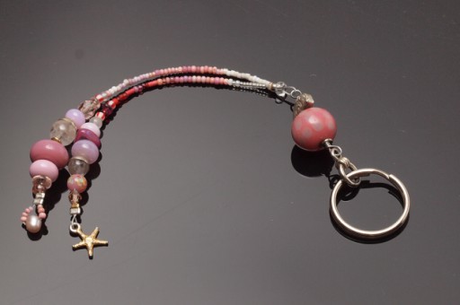 Revamped mouse. Overall length: about 6". Focal: about 1/2 inch; bullseye, pink with lavender dots. The rest of the beads are an assortment of effetre and, (probably) some german glasses. Restrung sometime mid-Oct., photographed 24oct19 with zuiko 50mm prime macro lens on olympus E620. Cropped only. Click for full size.