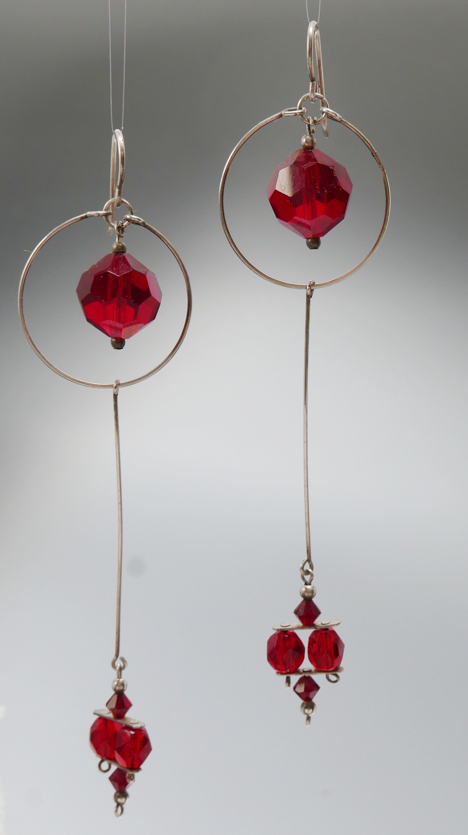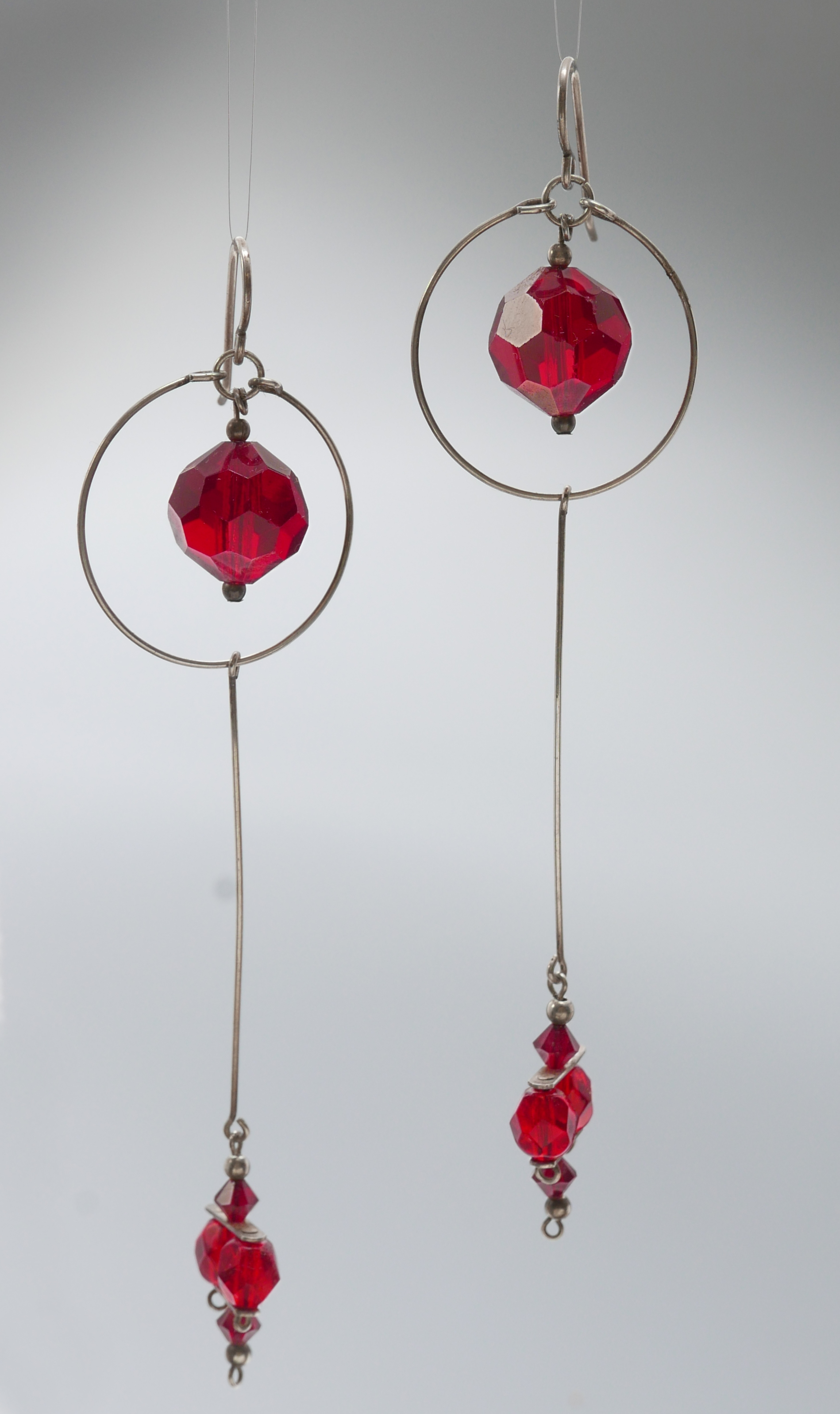 Today's earrings another one of those blast from the past posts: likely made a quarter century or more ago—the series dates back to the late 80s, but the Chinese and Czech faceted glass suggest a somewhat more recent provenance—these were one of those designs I originally made for sale, and, then, after failing to sell, became part of my personal collection.