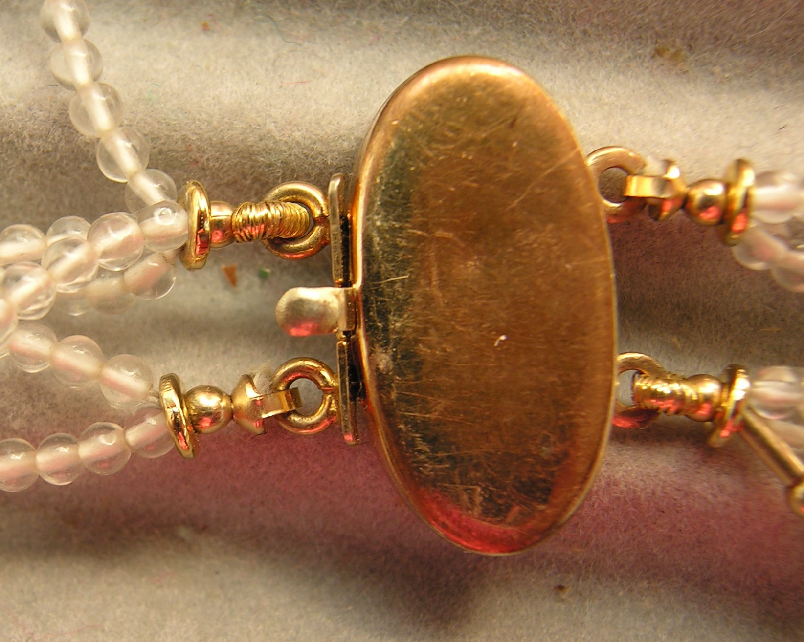 That's probably one of the more honest (if unintentional!) critiques I've received of my work in the last several years, but I was loathe to take all that work apart. The idea may have been stupid, and I should've known better (weight is a huge issue in this country) but I thought I did a good job on the technical end; moreover, stringing on thread is becoming rare (I didn't want the dark steel showing through 2mm quartz, as I recall—perhaps if the silver beadalon had been available I would've chosen that...)