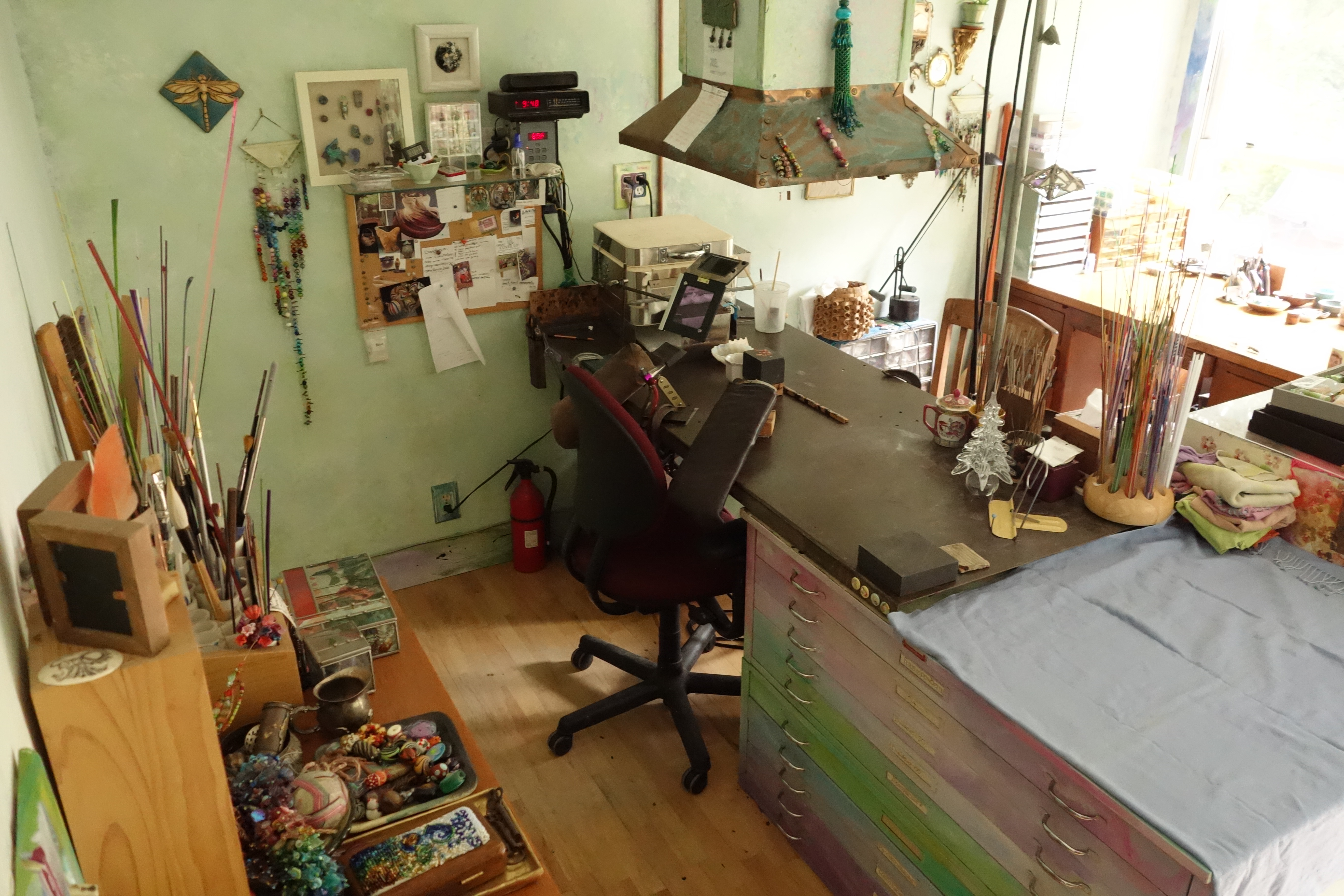 So here's a picture that shows the studio at a fairly typical level of mess, shot on 22sep2015:
