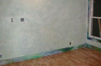 But, of course, the floor installation had to wait on the walls. It didn't take long for me to decide that the lambswool roller was far and away my favorite for applying paint, as seen here. See the paint page for more detail.