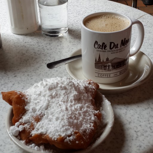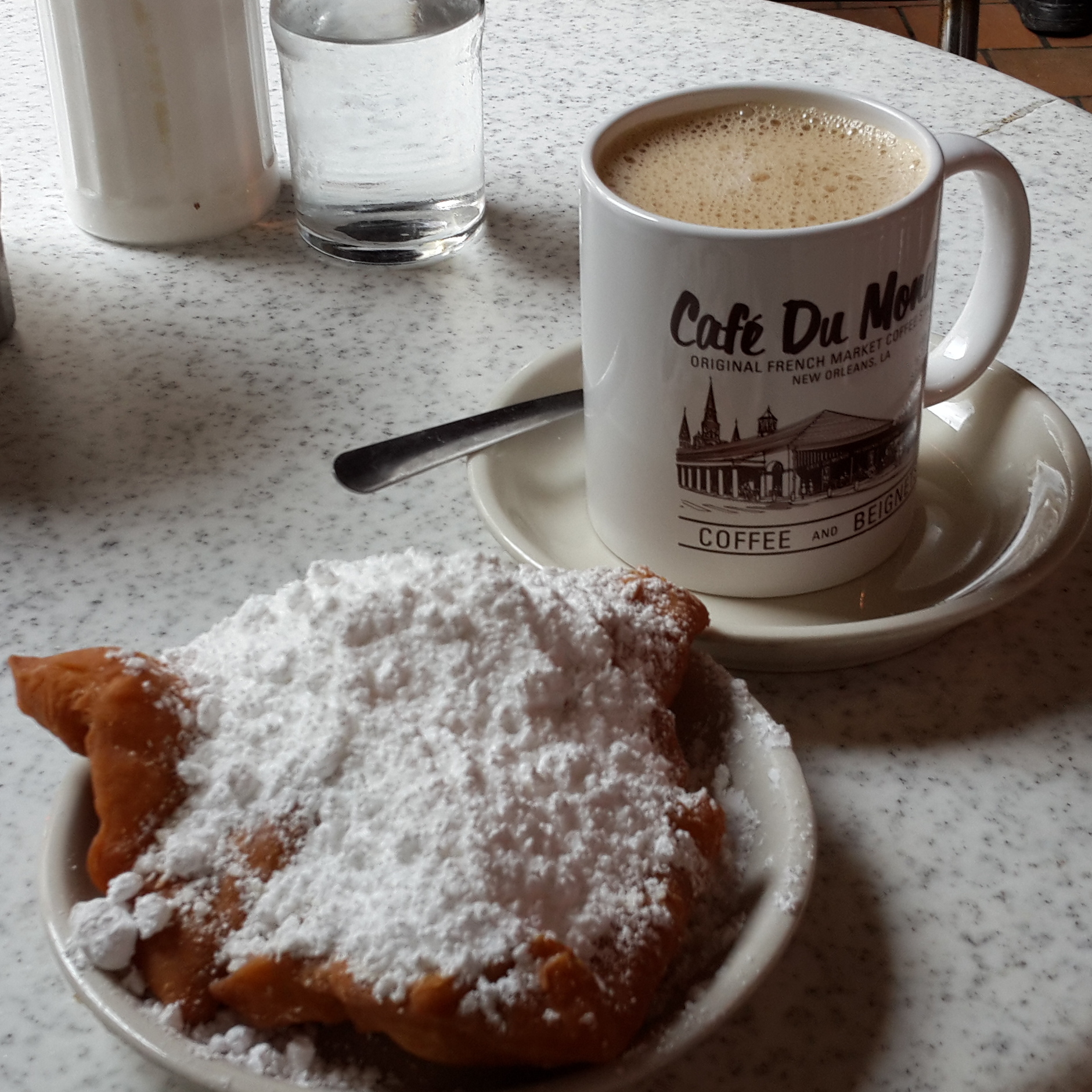 So I started the letter about a visit to one her favourite spots, Cafe du Monde, famous for its sugar dusted square donuts, called beignets, which of course I had to see in order to get a new mug.
