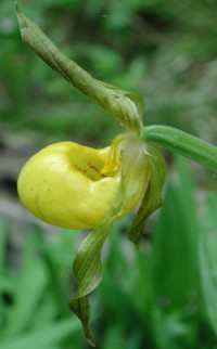 As we were leaving Cana Island Lighthouse I thought I spotted a ladyslipper along the road. I got just a glimpse as we were turning, and as there were three cars caravaning together, and children highly desirous of visiting the beach at our next destination (Whitefish Dunes) there was no time to stop. Next morning (Friday) I set out in search on Peninula's many trails. Nor were any to be found on the official trail for lady slippers at Peninsular, the Hemlock Trail, though I did see the wood lily and blue flag. However, I have a talent for getting lost and went the wrong way on the Sunset Trail, which intersects Hemlock at Weborg marsh—instead of heading north, back to South Nicolet Bay where we were camping, I went south, where a short, graveled leg of this trail curls around the park entrance. And there they were, right by the edge of the wide, bike and wheelchair accessible path. Success at last!