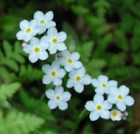 There are a number of forget-me-nots, some of which are aliens, and some not. This one looked remarkably like the specimen I have in my garden. Though they do well in shade (note the lush fern on the left) even some of the wild woodland ones suffered from the mildrew that rendered my patch a rotten, black mess. The little trail sign suggested the name came from a knight who fell into the water and drowned, begging his love to “forget me not!”. This specimen was shot on the Old Wagon Trail in van Riper, UP.