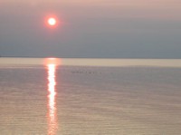The closest thing to a vacation picture I shot. I spent more time than my family really wanted whining that I'd left my watercolors home, and my efforts to capture the subtlety of the colors of this in colored pencil were dismal. While family members skipped stones, and conversed on a bench nearby, I sketched, and finally photographed, the sunset at Welcker's Point, Peninsula State park.